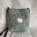草原とかわいいラムキンの刺繍、お花も咲いています。