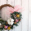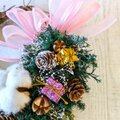 オーガンジーの透け感とピンク色が相まって…キュートでガーリィなクリスマスリースに仕上がっています。