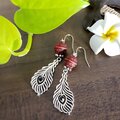 アンティークシルバー フェザーピアス 赤 ジェットブラック No.481-A
