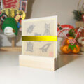 ⑤ お財布に入るコンパクトサイズ(6.0cm × 6.0cm)で、100%国産ヒノキ製の御符立て付きです。