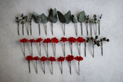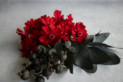 赤のジニアとブラックベリーでバックカチューシャ風のヘッドドレスにしました
