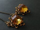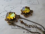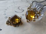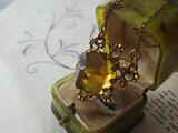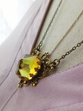 ヴィンテージ トパース色・美しい変形Hexagon / Floralデザインネックレス