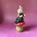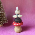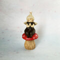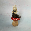 陶器【手を合わせる天使さん】キノコと小鳥a