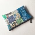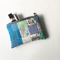 余った布等を活用したパッチワークとシンプルな刺し子を組み合わせたminiポーチです。