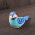 手びねりで成形しヘラでかたちを整え少し乾燥後、顔や翼を彫り込みます。細かい羽毛を線彫りするとふんわりとして見えてきます。羽の渦巻きは小さな体にみなぎる力をイメージしました。
