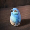 濃度の違うコバルトブルーを塗り分け素焼きし釉薬を吹きかけています。目やくちばしはゴムのり液でマスキングして後で外して細かく丁寧に仕上げます。本焼成後瞳に一点施した金液をさらに低温で焼付けるとキラリと光り、窯から出てくる時にはとても楽しそうです。
