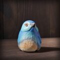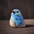 手びねりで成形しヘラでかたちを整え少し乾燥後、顔や翼を彫り込みます。細かい羽毛を線彫りするとふんわりとして見えてきます。羽の渦巻きは小さな体にみなぎる力をイメージしました。