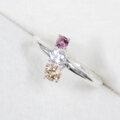 ホワイトサファイアとインペリアルトパーズ、スピネル、SV925の指輪(リングサイズ:10号、天然石、誕生石、ロジウム)