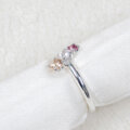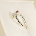 輝きの綺麗な小粒の天然石を3石留めました指輪です。石の輝きを活かしたくて、石枠や爪があまり見えないデザインで作りました。