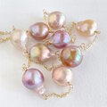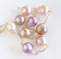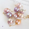 天然淡水バロックパール ステーションチョーカーネックレス ゴールデンミックスカラー 2点のみ