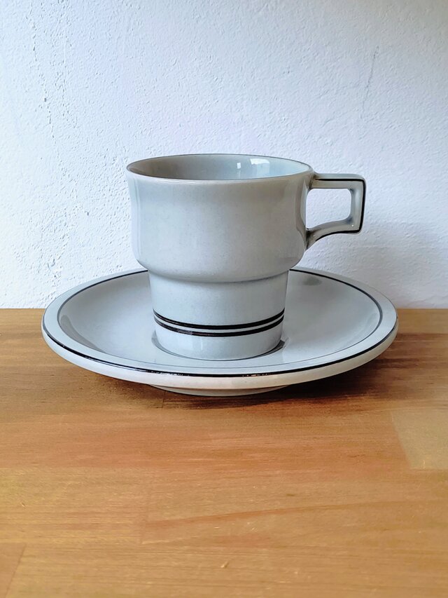 コロンビアシリーズの魅力は、何と言ってもそのシンプルで端正な佇まいにあります。無駄を削ぎ落としたフォルム、わずかにグレーがかったニュアンスカラーの素地、そしてカップとソーサーに控えめに施されたダークグレーのライン。これは、派手さはないけれど、一度手に取ると手放せなくなる、北欧デザインのエッセンスが凝縮されたデザインです。
