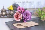 和装・フォーマル・ダンス髪飾りに♡紫の薔薇とピンクのコスモスのアレンジUピン ハロウィン パーティー 袴 着物 フラメンコ