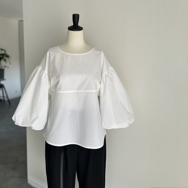 ふんわり袖のコットンブラウス 軽やかなコットン素材で仕立てた、シンプルで品のある一枚、程よく丸みを持たせたボリュームスリーブが、着るだけでやさしい存在感を添えてくれます。裾は軽くラウンドさせ、どの角度から見ても柔らかな印象にデニムにもスカートにも合わせやすく、季節を問わず活躍します。上質な日常を過ごしたい方にシンプルの中に、さりげない個性を