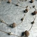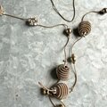 コイルになったビーズ、クリアとゴールドトーン、そしてラインストーンが散りばめられたボールビーズがアクセントになった、ゴールドトーンロングネックレス。