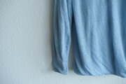リネンニット women/L 二重長袖プルオーバー(アクアブルー)
