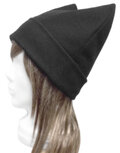 シンプル猫耳帽子(折り返しタイプ)◆変り織コットンニット/ブラック ◇ゆったりサイズ・小顔効果・長いシーズン着用◇
