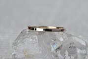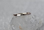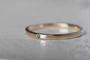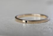 細身のプレーンな平打ちリングに一粒ブラックダイアモンドを留めたシンプルなデザインの作品です。