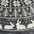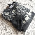 丸ヨーク部分は手編みで、それ以外は家庭用編み機を使っています。