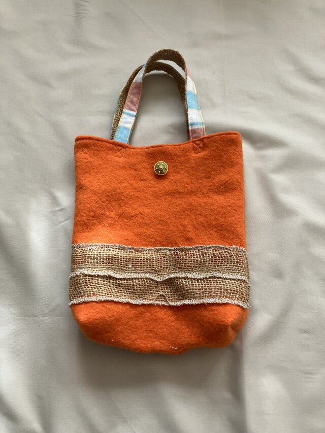 洗濯して縮んでしまったニットを、バッグに仕立てました。