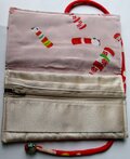 蓋 が出来るようにして、中にお財布代わりに、お札、通帳 、お薬手帳入れ、デジカメ、スマ―トフォン入れ、携帯電話入れ、懐紙入れ、脂取り紙入れ、お数珠入れ、アクセサリー入れ、三味線のバチ入れ等としてもご利用できます。