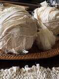 手に取ると、繊細なシルクの滑らかな手触りが心地よく、見た目にも美しい裂き織りの模様が目を引きます。