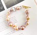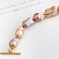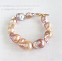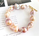 ペールピンクやペールオレンジ色の小粒のオイスターパールのブレスレットです。