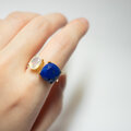 対照的でありながら調和する二つの天然石が寄り添い、指先に上質で華やかな存在感をもたらします。普段使いはもちろん、特別な日のアクセントにもおすすめです。