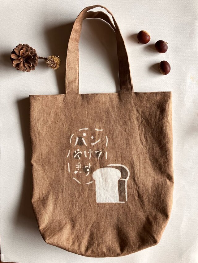 定番のパンやけてますのシンプルなデザインで、大人可愛いトートバッグです。