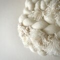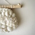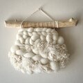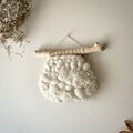 みるく色の羊毛をたっぷりと使用し、極細糸やファンシーヤーン等と組み合わせ素材感も楽しんで頂けるよう織りあげた、一点もののタペストリーです。