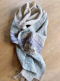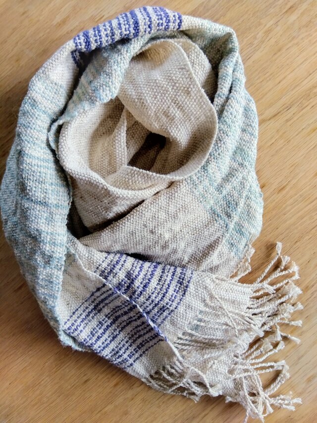 シルク紬糸とリネンで穏やかな色合いのストールを織りました。
