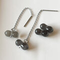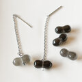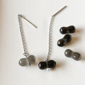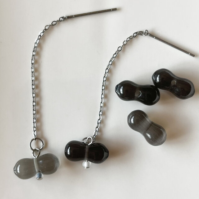 【P146 豆グレー黒 Parisビーズ チェーンピアス 】ペア チェーンなしでピアス・イヤリングも可能