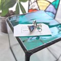 ステンドグラスのアクセサリーで、耳元に小さなアクセント。リボンの形のステンドグラスのイヤリング/ピアス