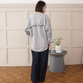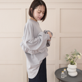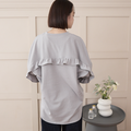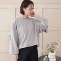 大人のスウェット 甘すぎないフリル 柔らかストレッチ素材トレーナー ライトグレー 0671Grey