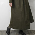 落ち着いた色味のカーキで、ぐっと大人っぽくまとめてくれます。