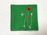 シンプルな木綿ハンカチに刺繍しました。21㎝四方です。吸水性や肌触りの良い素材、使いやすいサイズ感、美しい刺繍と縫製に拘りました。