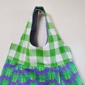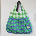ギャザー切替えラウンド型トートバッグ(カエル×ブロックチェック柄)
