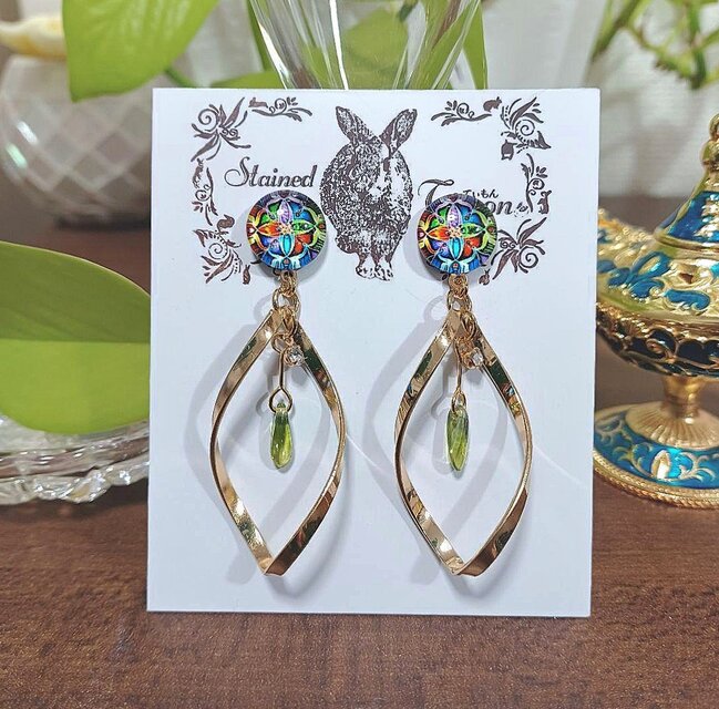 揺れるピアス マジカルフラワー❀ポストピアス ハーブグリーン No.1650