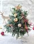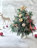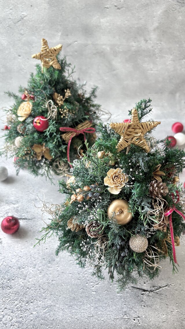 (BOXつき)ふわふわナチュラルクリスマスツリー(ゴールド)/プリザーブドフラワー/木の実/クリスマス/