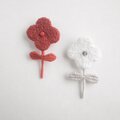 花びらの部分は、白い刺繍糸を使い、フレンチノットステッチを敷き詰め、モコモコした可愛い質感に作りました。