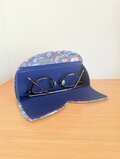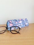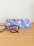 【受注制作】メガネケース(グレー地ピンクフラワー×ネイビー)