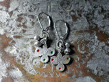 oldベルベル族ヴィンテージシルバーと小さな花付き鈴のピアス(クローバー)
