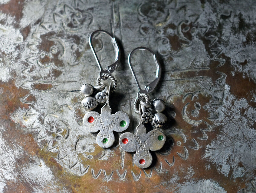 クローバー型のパーツはベルベル族のヴィンテージシルバーです。恐らくネックレスなどのパーツとして使われていたもので、摩耗感があります。