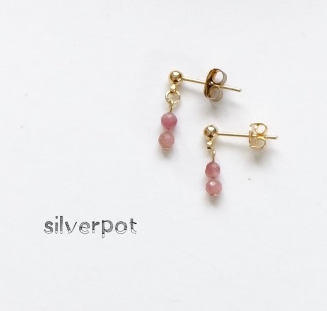 GS68【天然石 ピンクトルマリン】極小【プチ】スタッドピアス(パーツ変更可能)