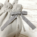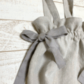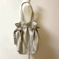 ナチュラルな生成り色とグレージュのリネン生地を組み合わせて仕立てた、巾着風のトートバッグです。