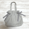 表地にはやさしい生成り色を、裏地とリボンには落ち着いたグレージュを使用し、上品でニュアンスのあるコントラストに仕上げました。