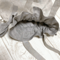 上部の紐をキュッとしぼってリボン結びにすると、フリルのような口元が現れ、ナチュラルな中にもほんのり愛らしさが漂います。