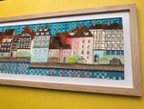 サーモンピンクの屋根と街並み,花柄が気に入り購入しました。部屋に飾りましたが、パッと部屋が明るくなりました✨画像通り、手の込んだステキな作品でした✨✨この度はありがとうございました