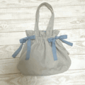 ナチュラルな生成り色とサックスブルーのリネン生地を組み合わせて仕立てた、巾着風のトートバッグです。