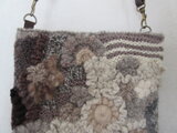 フリーフォームという自由な発想でモチーフを編み、また自由なつなぎ方でつなぎ合わせた毛糸のバックです。