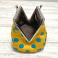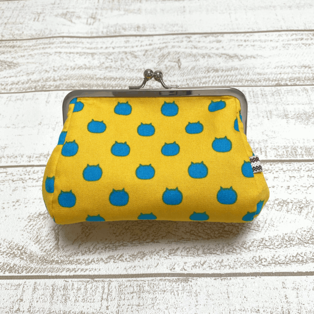 猫のシルエットが並んだ、ころんとしたがま口ポーチです。